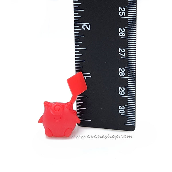 Japanese Pokemon Keshi Figure. If you're unfamiliar with them, keshi figures are small rubber capsule toys sometimes called eraser figures because of their rubber material and soft pliable nature. This is a red figure of fairy Pokemon Clefairy that's also a pencil topper. This has been displayed and has minor wear. Looks great on display and is a cute Pokemon figure for your collection.