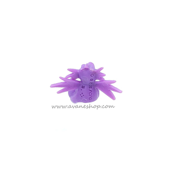 Japanese Pokemon Keshi Figure. If you're unfamiliar with them, keshi figures are small rubber capsule toys sometimes called eraser figures because of their rubber material and soft pliable nature. This is a purple Seadra, second on the Horsea evolution line, that's also a pencil topper. This has been displayed and minor wear and a small red mark on his curled tail. Still looks great on display and is a nice little piece for any Pokemon collection.